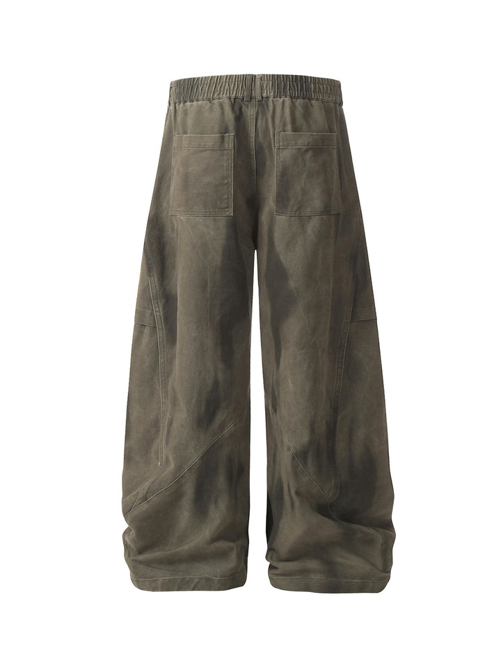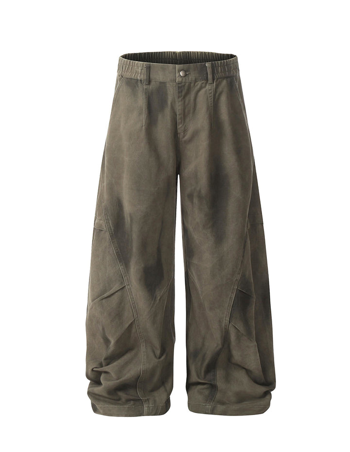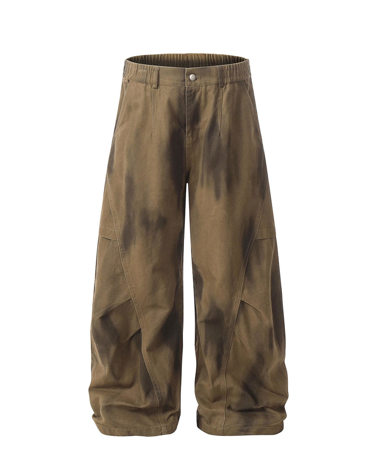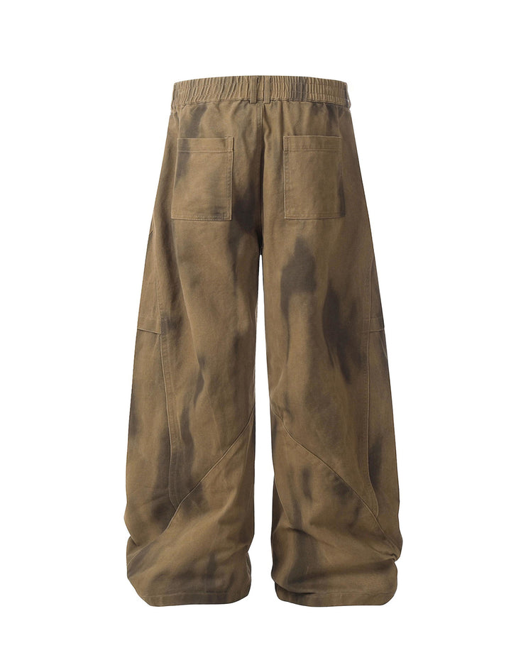 BAKYARDER Vintage Wrinkled Distressed Tie-Dye Barrel-Leg Casual Pants