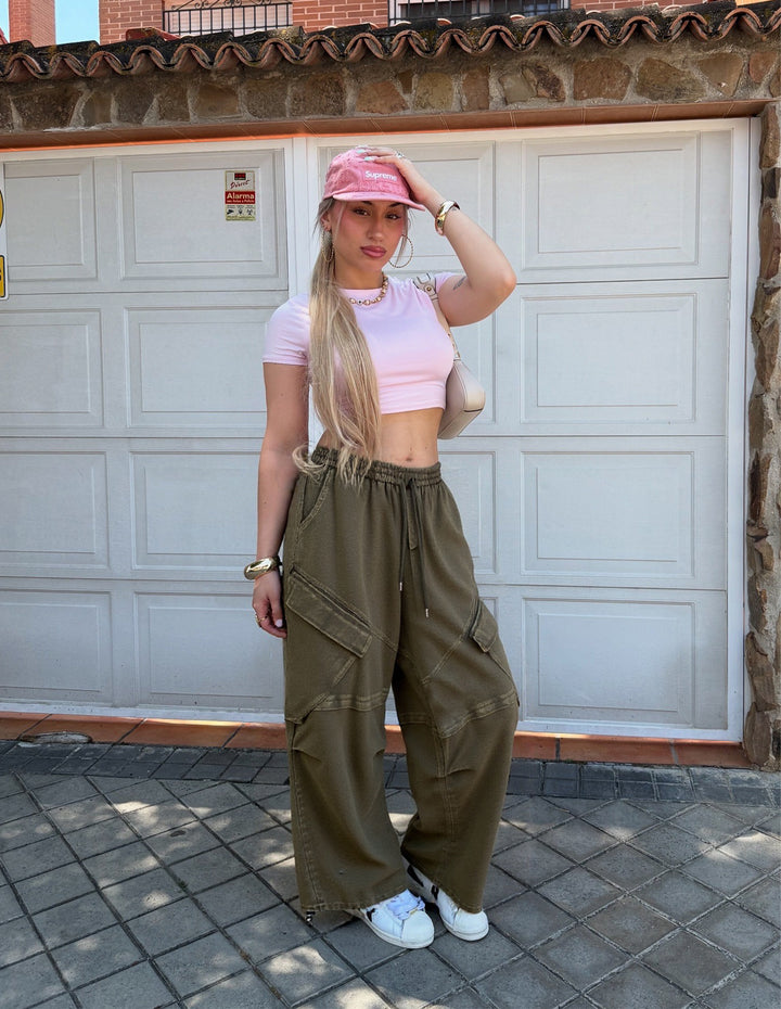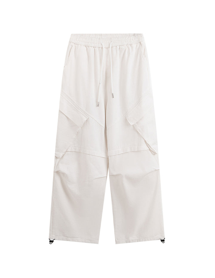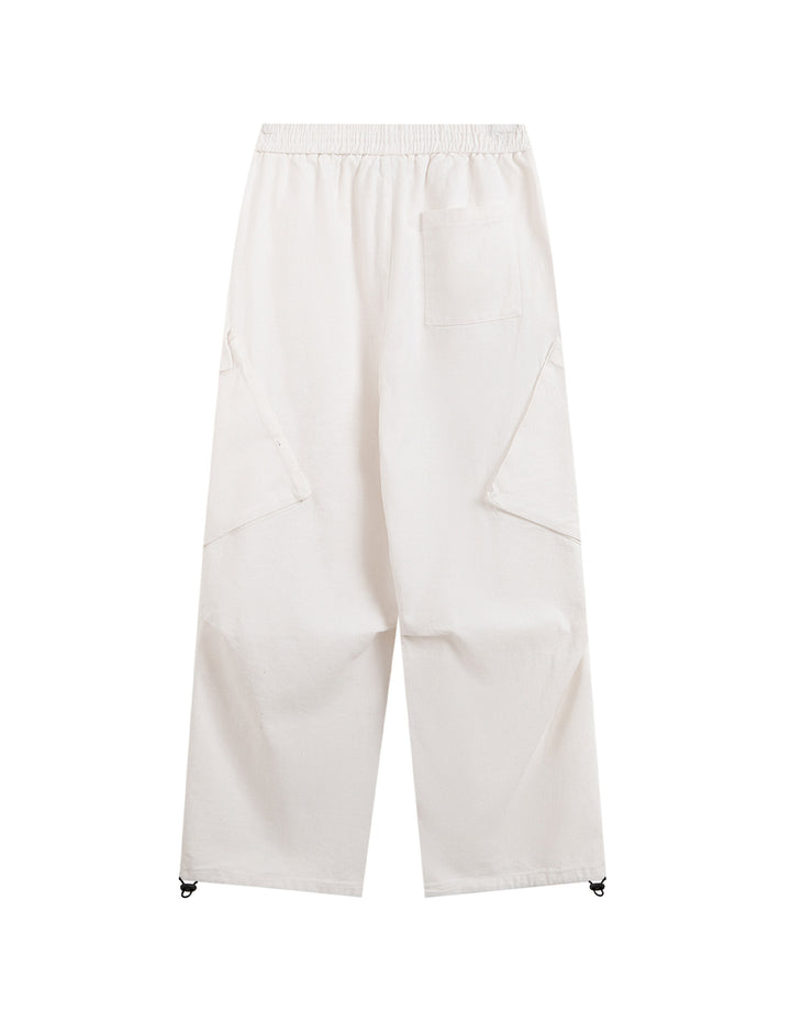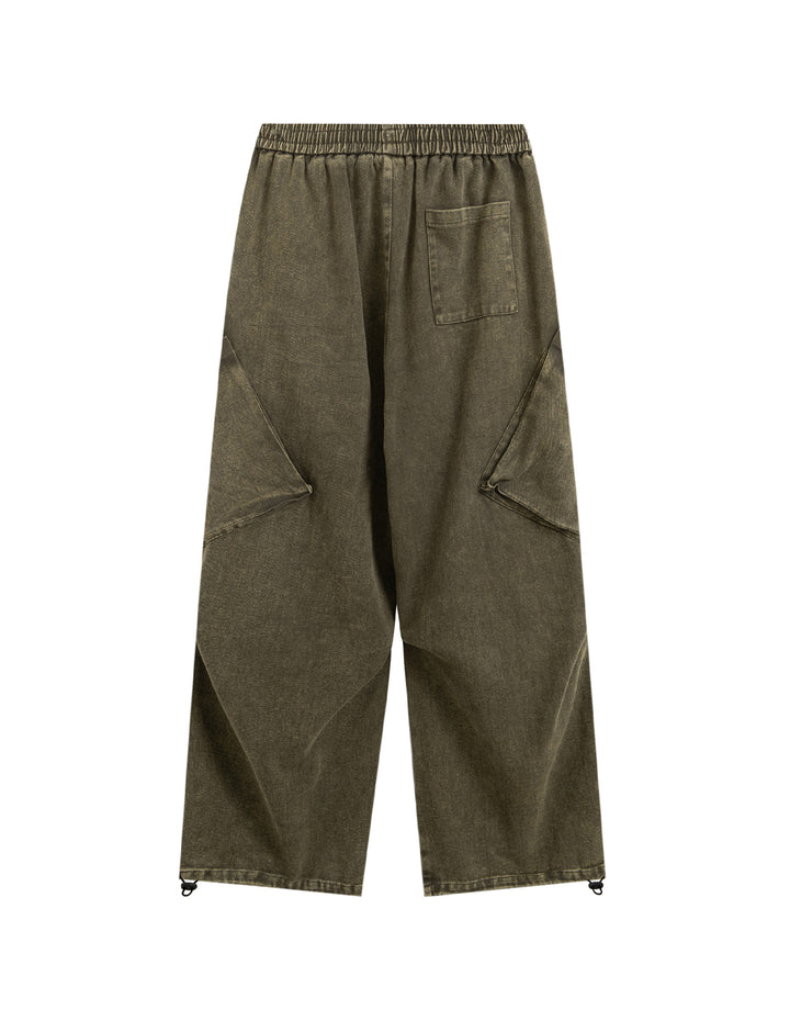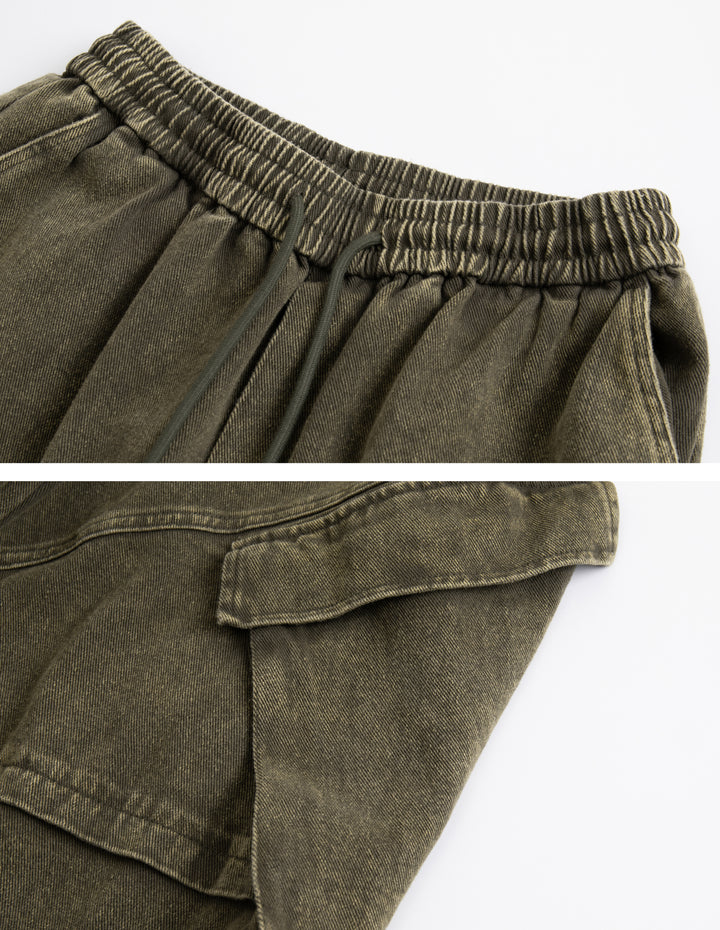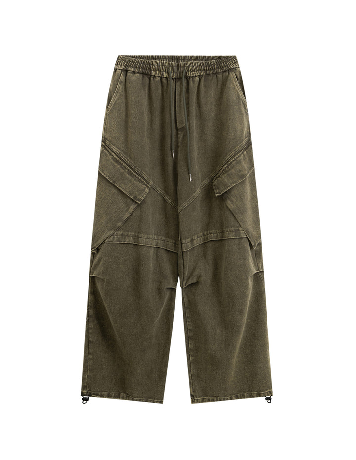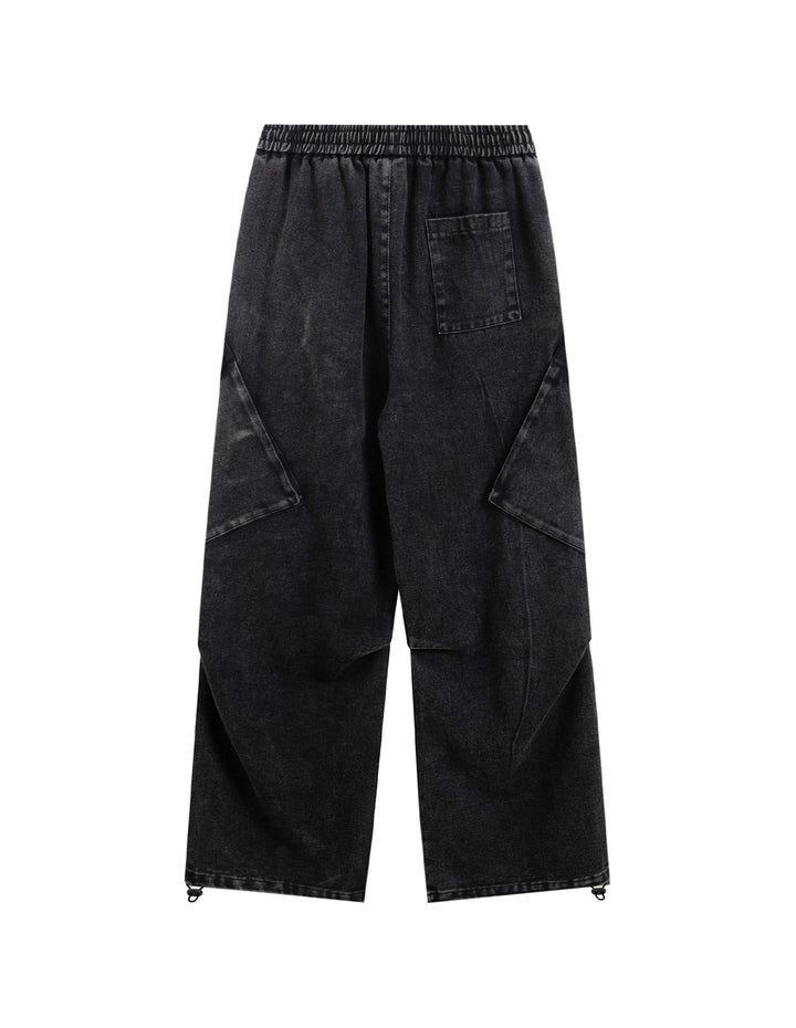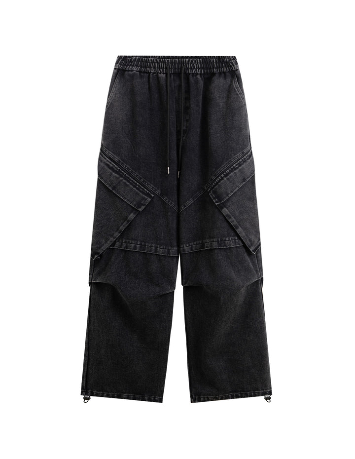 BAKYARDER Washed Cargo Pants Distressed Jeans Wide Leg Elastic Waist Unisex Pants with Big Pockets