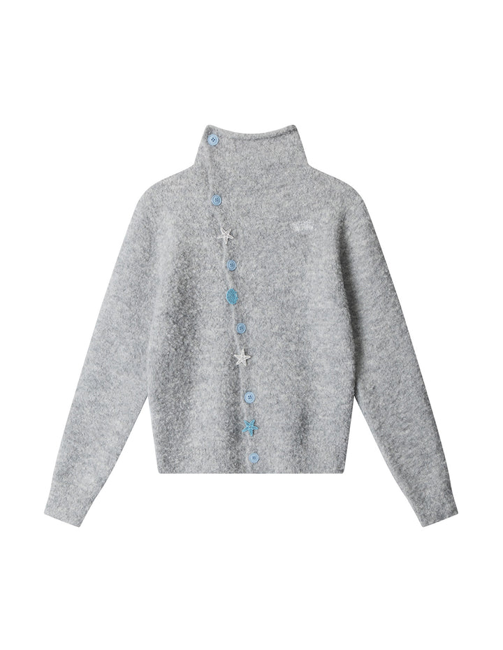BAKYARDER Women's Star Button Asymmetric Cropped Cardigan Sweater