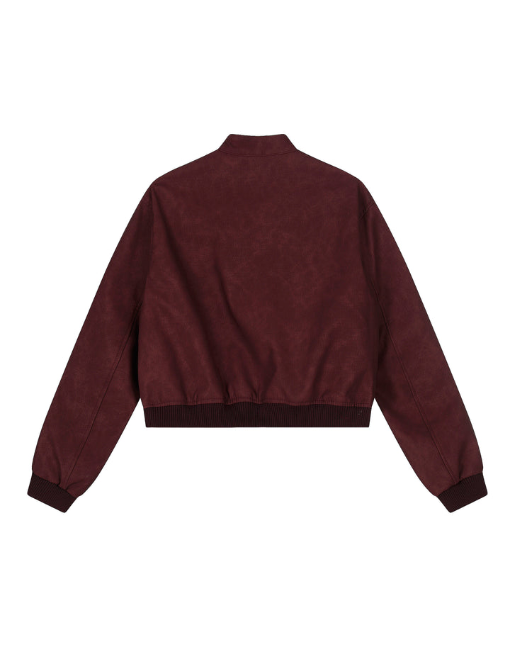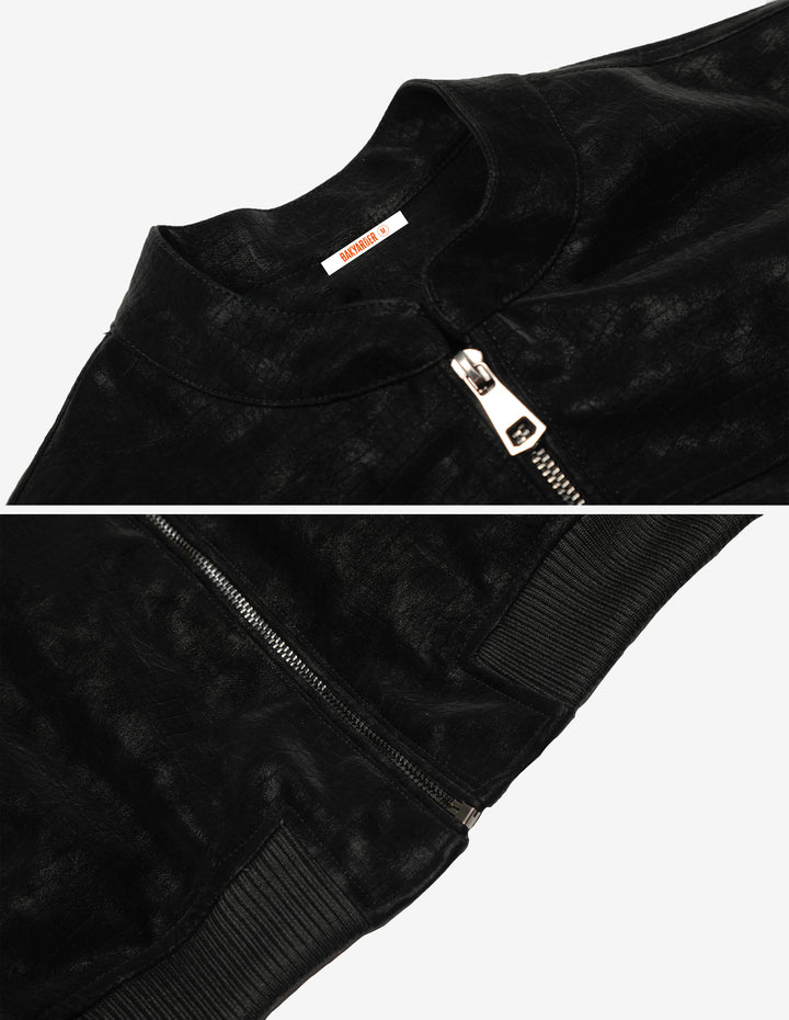 BAKYARDER Women's Vintage Stand-Collar PU Short Leather Jacket